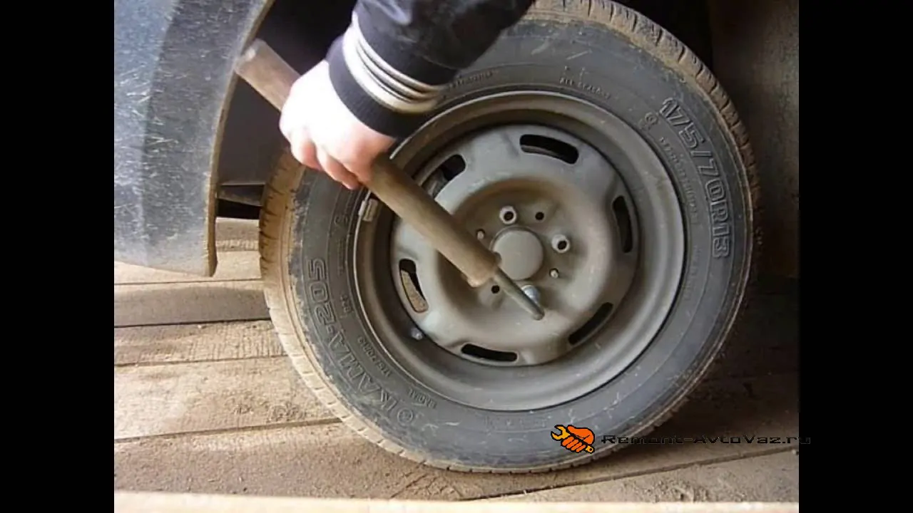 Подпираем колеса, снимаем ручник и колесо.