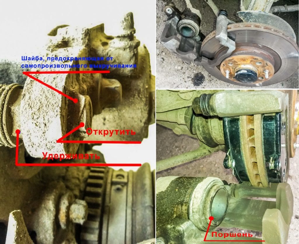 Внимание – начиная с этого момента нельзя нажимать педаль тормоза. Иначе тормозные поршни выдвинутся и демонтаж/монтаж будет затруднен
