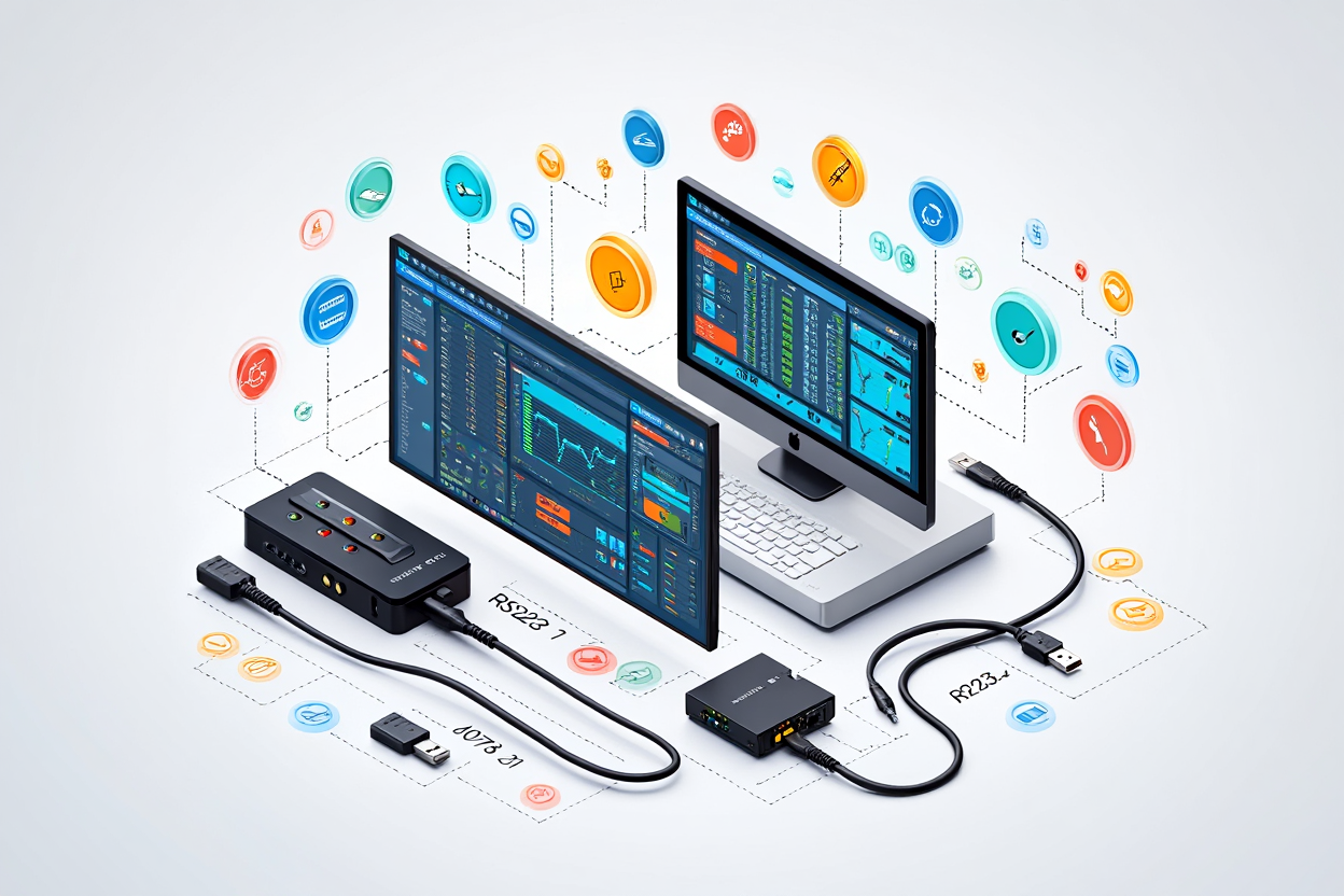 - Контроллер подключается к компьютеру инженера через физический интерфейс (USB, RS-485) или сеть Ethernet.